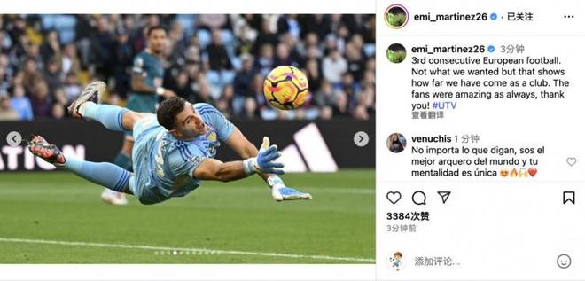 大马丁社媒:连续第三年获得欧战资格,展现了球队如今的成长高度